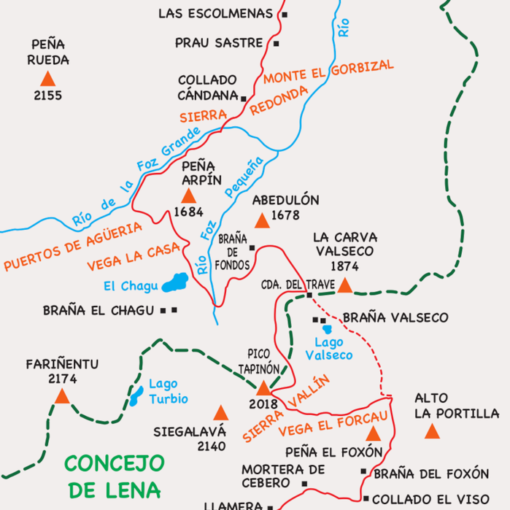 Comenzamos esta salida en las proximidades de Viapará (689 m.), en Morcín. Con rumbo NO., seguimos un sendero de ganado, pasando sucesivamente por las majadas de Fonfría, Peñón y Ories, hasta alcanzar la hermosa vega de Bobies, que se extiende bajo las estribaciones de la sierra del Aramo. Por la parte alta de la campera seguimos un marcado sendero que nos lleva a la majada de Brañacé; por la parte superior de sus cabañas llegamos a la collada Pan de la Forca.