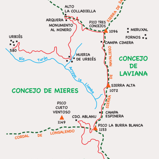 Seguimos la señalización del sendero PR LE – 21, que discurre en cómodo ascenso por todo el valle de la Mirva junto al arroyo del mismo nombre, por una pista rodeada de verdes praderías y frondosos bosques de hayas y robles principalmente; si volvemos la vista atrás podemos disfrutar de hermosas panorámicas de las montañas calizas de Burón y Riaño.
