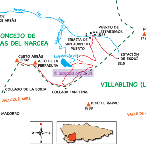 En esta ruta comenzamos recorriendo en primer lugar la parte más occidental de la Sierra de Valledor, que hace de línea divisoria entre los concejos de Allande y Cangas del Narcea, para luego pasar a la Sierra de Cerveriz, ya en tierras canguesas. la orografía de estas sierras es agreste y áspera. los profundos valles que las surcan se caracterizan por las sinuosas encañadas que jalonan sus contrafuertes, ofreciendo nuevos y recónditos parajes donde se asientan remotas y antiquísimas brañas, o los Cortines de colmenas, colgados en los flancos de la montaña.