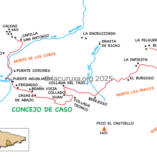 Un balcón abierto que mira con autoridad a los cuatro puntos cardinales; destacando una gran panorámica donde podemos ver: la Sierra de Aves, Los Tornos, La Llanbria, Tiatordos, Sierra de Beza, Cabronero, Picos de Europa, Mofrechu y Sierra del Sueve. También hermosas vistas de las tierras de Ponga, Amieva, Piloña y Parres.