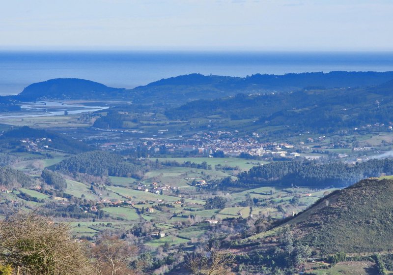 A partir de aquí, y en suave descenso, el camino discurre entre praderías, dando vista al valle de Boiges, al mar Cantábrico y la desembocadura de la ría de Villaviciosa y la Villa en primer término.