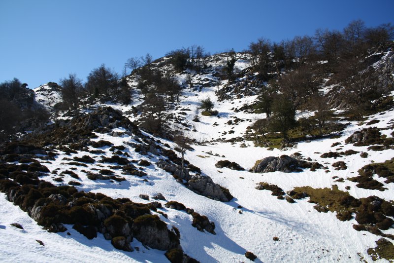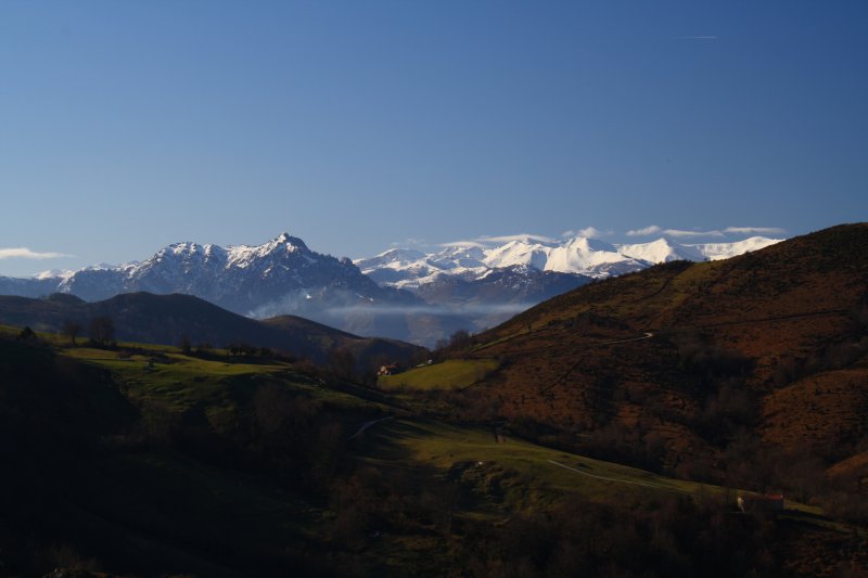 Comenzamos esta salida en el pueblo de Melendreros (600 m.), en tierras del concejo de Bimenes. Por una pista que discurre entre praderías y cabañas, vamos ascendiendo hasta ganar el caserío de la Muda, en Fayacaba, un hermoso lugar donde hay un albergue de montaña y una fuente. Aquí la pista se bifurca; continuamos de frente por la misma y llegamos a la majada de Campa Gües, seguimos por las camperas contiguas de Pasaoriu. El camino va dejando a nuestra izquierda el cordal de Peña Mayor; pasamos junto al Pozo Funeres, lugar muy visitado por los hechos que allí acontecieron; tras cruzar estos pastos llegamos a la collada de Llagos. Por una mullida campera salpicada de tejos, espineras y carrascos avanzamos, después por la lomera hasta la cima del pico Triguero (1293 m.), máxima altitud de la sierra.