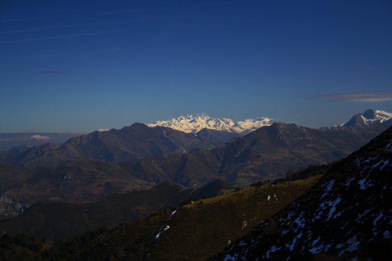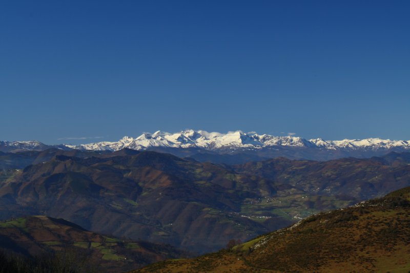 Una extensa y hermosa panorámica se contempla de todo el cordal y las sierras del Cuera, Sueve, Aramo; los cordales de Ponga y Piloña; los Picos de Europa; el macizo de Ubiña, así como otras cumbres del interior.