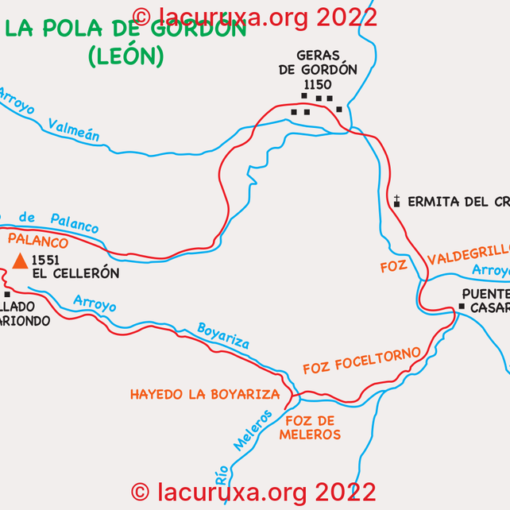Iniciamos la ruta en la localidad de la Roda (127 m), en el aparcamiento que está a la entrada del pueblo. Después de cruzar el pueblo salimos a la carretera principal, la AS-23, por la que, después de una recta de 500 m, giraremos a la izquierda para entrar en otra carretera secundaria y, después de cruzar el arroyo Gamazá, nos lleva hasta el pueblo de Baodecangas (90 m). Aquí giramos a la izquierda y, tras un pequeño ascenso, llegamos al pueblo del Monte (180 m), donde encontramos el Santuario de los Mártires, cuya fiesta se celebra en agosto y el Mirador del Monte, magnífico balcón para contemplar, hacia el N. el extremo occidental de la rasa costera asturiana y el mar Cantábrico, hacia el O. la Mariña Lucense y, en medio, la Ría del Eo.