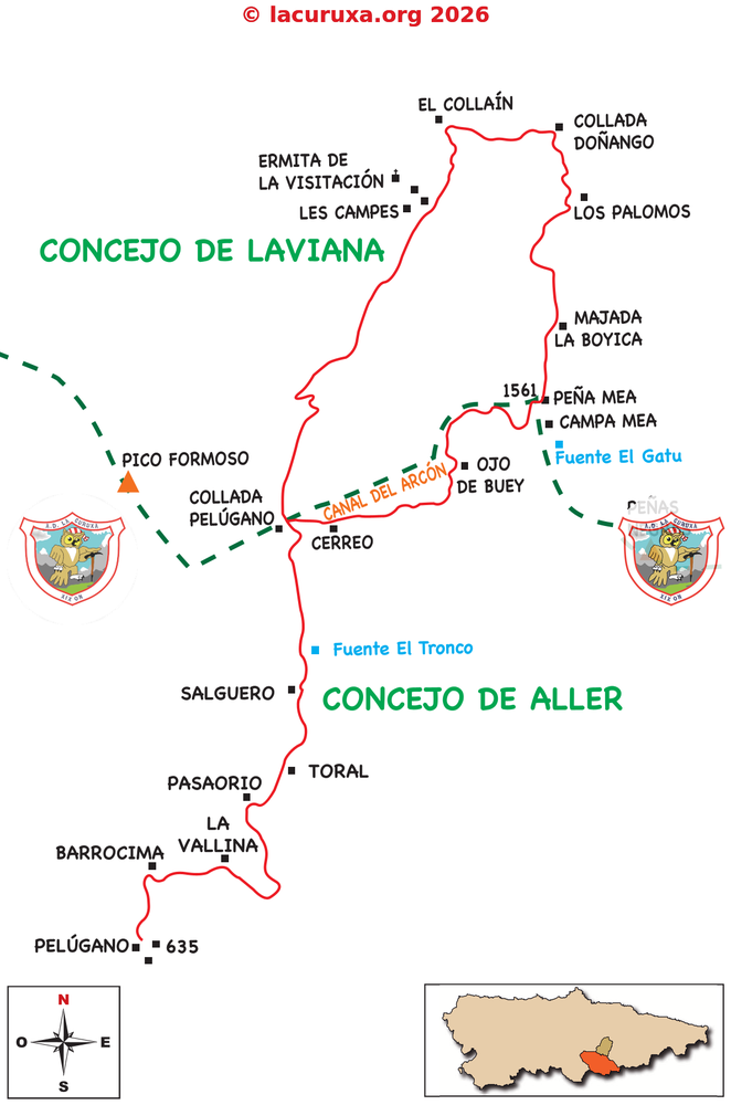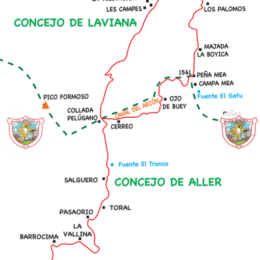 Seguimos un desvío a la derecha que sube en vueltas por el canto de la sierra y nos lleva al collado de Llagu Ovia. Desde aquí continuamos al SE., por un sendero de ganado que atraviesa el brezal; tras pasar por el collado la Piedra, enseguida alcanzamos la cumbre de la Peña La Ordaliega (1463 m), que nos ofrece una abierta panorámica de los montes de los concejos de Piloña y Caso, así como destacadas cumbres de la Cordillera y Picos de Europa.