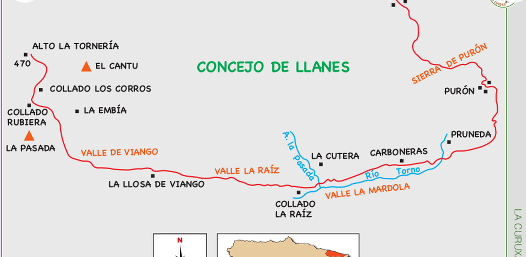 Iniciamos esta salida en el Alto la Tornería (470 m), con dirección S, tomamos una pista hormigonada que nos conduce primero al collado los Corros y finaliza en el collado Rubiera, hermoso lugar con la peña Blanca y la sierra del Cuera como telón de fondo. Comenzamos un ligero descenso hacia el SE, por el denominado «Camín de Gildo», al poco encontramos una cabaña, lugar conocido como la Vegona, la senda discurre por la ladera de la Pasada, un tramo empedrado que se le conoce como el «Conchizo la Vegona».