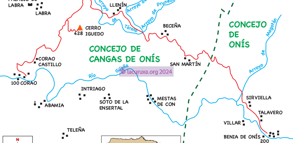 Al final del pueblo de Tárano nos desviamos a la izquierda, para tomar una carretera que, después de 1 km, nos dejará al principio de la pista, por la que subiremos para alcanzar el Cerro Iguedo (428 m), donde encontraremos unas antenas. Las vistas desde esta modesta cumbre son espectaculares: los valles del Güeña y del Sella, pico Següenco, macizo occidental de Picos de Europa, sierra del Sueve, montes de Sevares, Mota Cetín, etc…