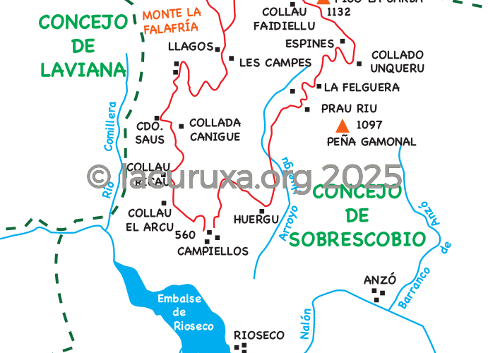 Iniciamos esta salida en la localidad de Campiellos (560 m), desde la plaza del pueblo vamos a la derecha, hacia la parte alta, conocida como el Pandiellu.