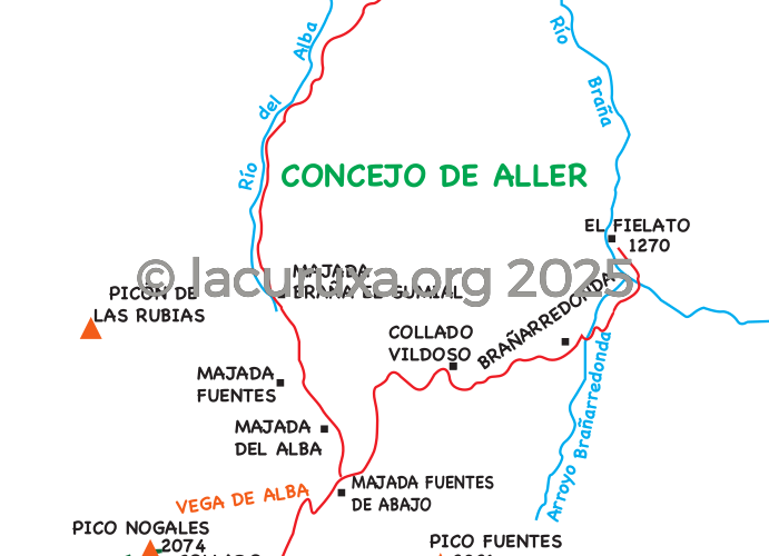 Iniciamos esta salida en el Fielato (1270 m), lugar situado junto a la carretera que sube al Puerto de San Isidro. Una vez rebasado Riofrío, tomamos una pista de tierra, enseguida nos lleva a cruzar el río San Isidro o río Braña por un puente para remontar la panda herbosa, poblada de matas y piornos, alcanzando la mullida campera donde se asientan las cabañas de Brañarredonda.