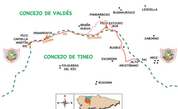 Iniciamos esta salida en el Alto Aristébano (561 m), donde tomamos una pista hacia el NO, hasta llegar a un cruce de caminos, donde giramos a la derecha, continuamos subiendo, pasando por debajo del pico Sorrapio. Continuamos por la pista con algún falso llano, entre cercados para el ganado, pasando por […]