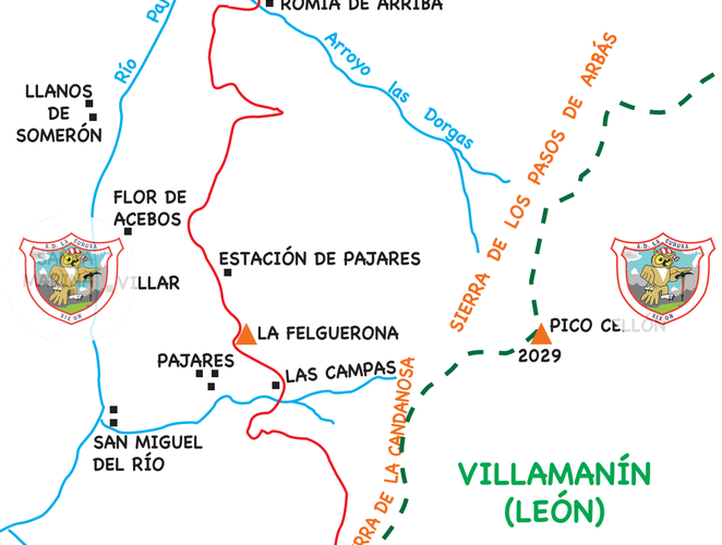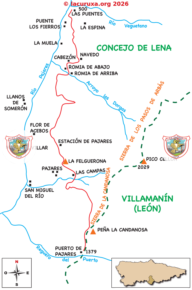 A nuestra izquierda, unos 200 m por debajo, quedan los pueblos de las Campas y Pajares. Tras rebasar la arista sur de la Felguerona alcanzamos la estación del ferrocarril de Pajares, actualmente en desuso.