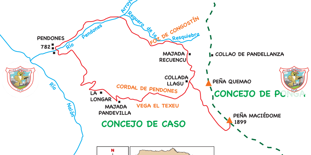 Iniciamos esta salida en el pueblo casín de Pendones (782 m), tomando un desvío a la derecha que baja a cruzar el río, luego sube por un tramo cementado; después de rebasar una fuente se deja el camino principal y se coge un desvío a la izquierda, atraviesa el bosque y nos lleva a la Longar, donde hay una cabaña.