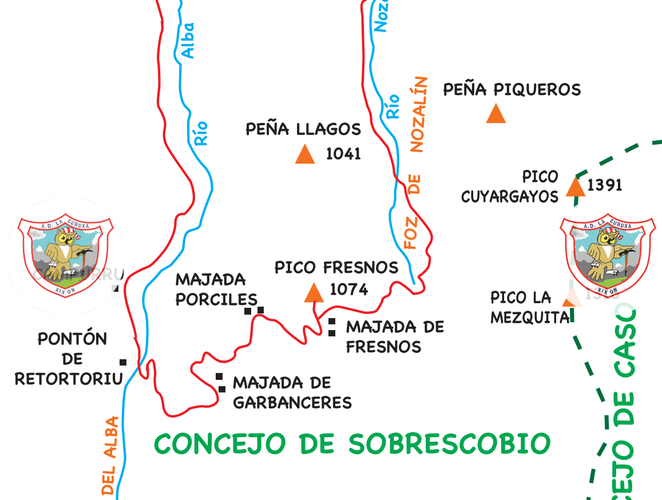 Iniciamos esta salida en el pueblo de Soto de Agues (440 m). Atravesando el pueblo con dirección S, tomamos un buen camino que, tras rebasar la piscifactoría, se adentra en el Desfiladero del Llaímo. Llevando el río Alba a nuestra izquierda, rebasamos el antiguo cargadero de mineral de Campurru, donde hay una fuente, y llegamos a la encrucijada de caminos del Pontón de Retortoriu.
